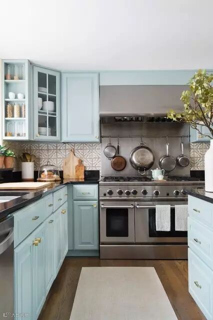 视觉上的拥挤大部分都是因为实物选的不对,就像本来厨房就小,上下都布满了各种墙体收纳柜,整体空间也就显得拥挤厚重了。在选收纳柜的时候建议带玻璃或保持留白为佳。