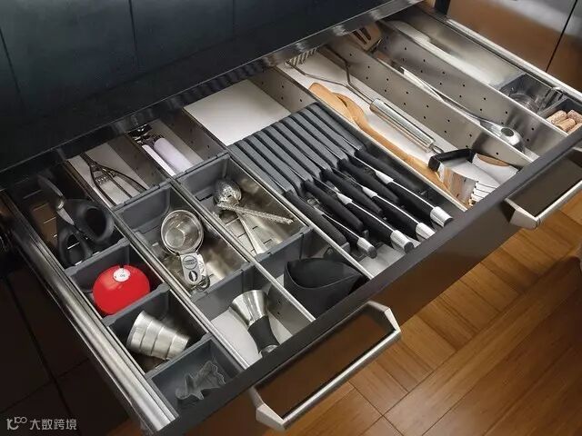 ▲规整实用的厨房方格抽屉收纳