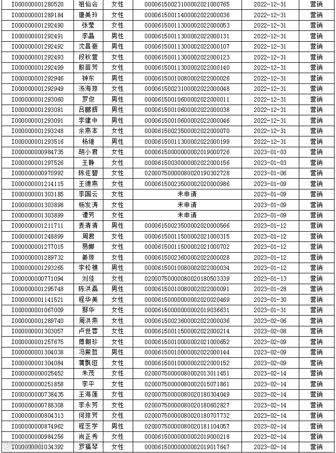 离职销售人员信息公示