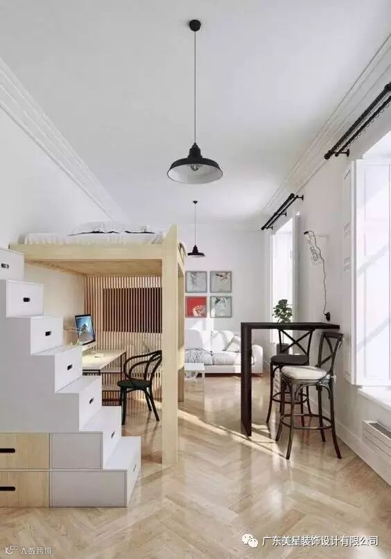 将原来固定的床位抬高,换一种形式自然多了很多可用空间。