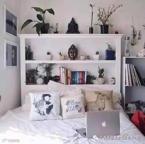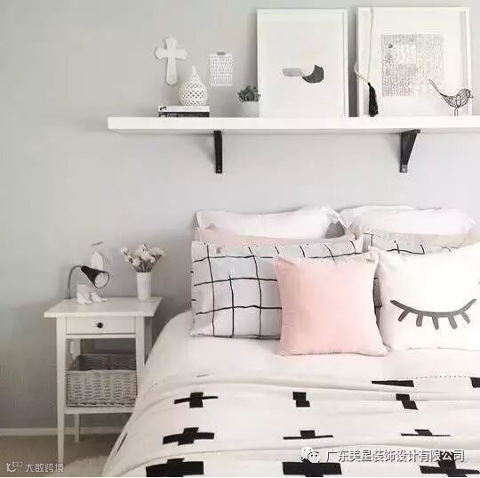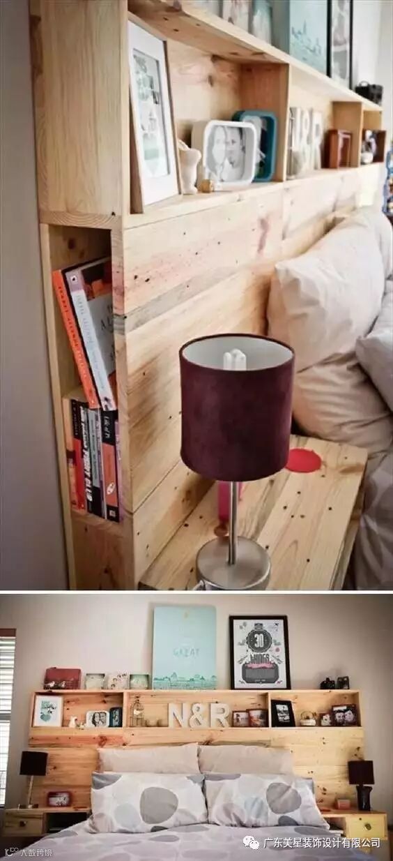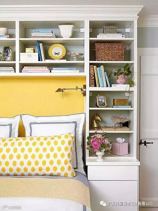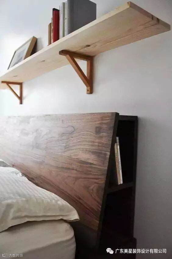床头位置总是光秃秃的一大面墙,浪费了多可惜?只需要小小的几块搁板,日常小物品都能摆放,以后再也不用担心床上一团糟了。