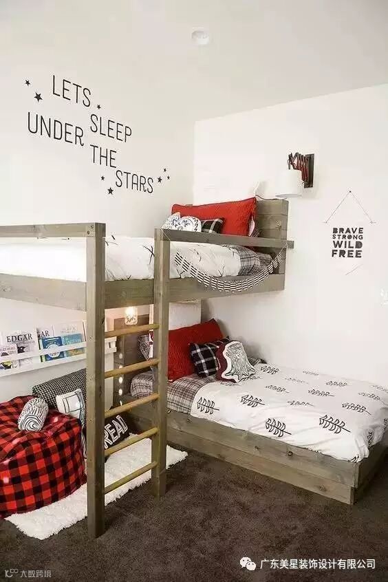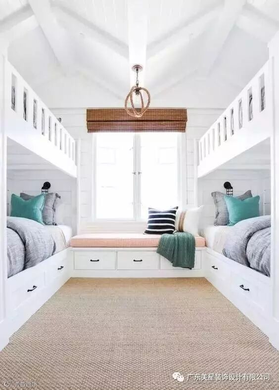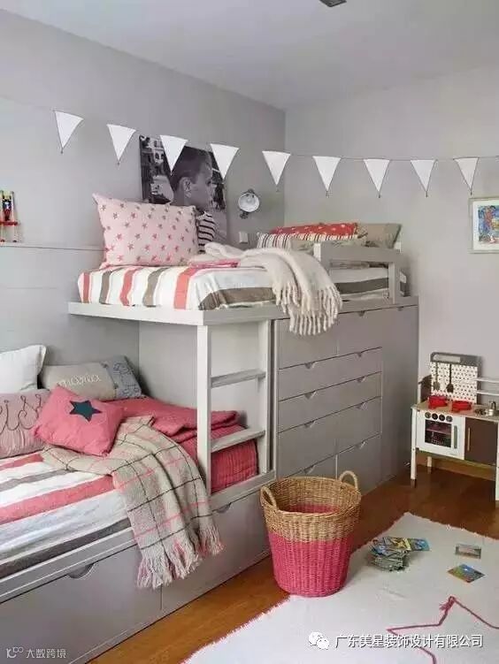 如果家里有两个孩子,可以选择这样的双层床。上下一体,更省空间。