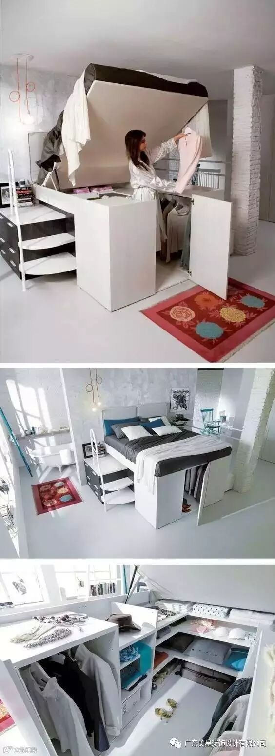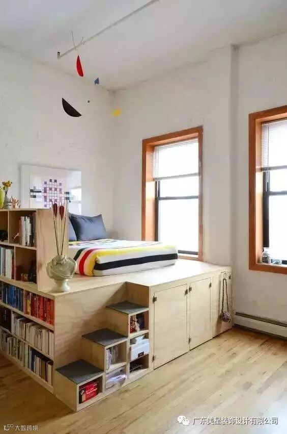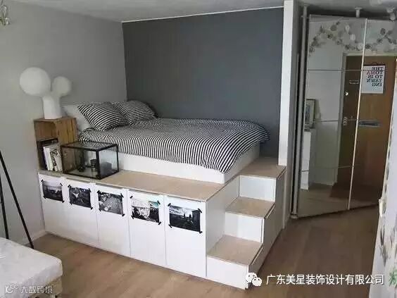 将床抬高,做成类似榻榻米的床位,利用内部的存储空间~