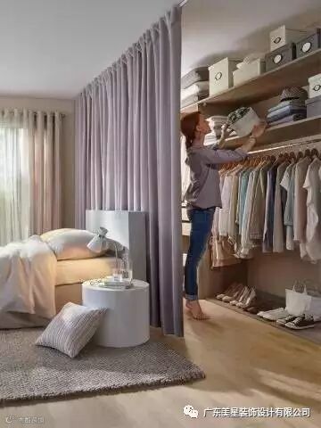 如果嫌成本太高,不想打隔断,那就干脆用一个窗帘隔开,构思一样巧妙哦。