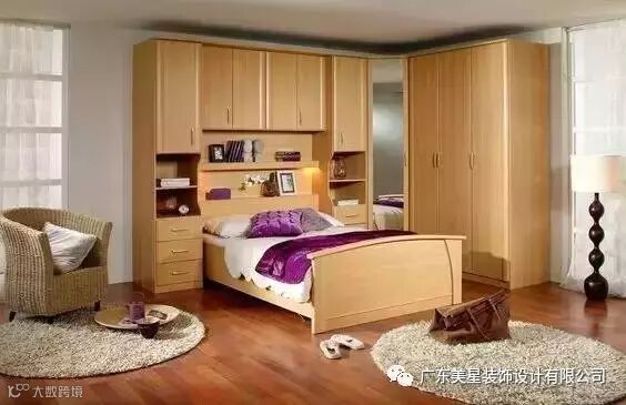 在床体背靠的背景墙上放一个整体立柜,这样就多出一面墙的柜子啦,想放什么还不是都随你~