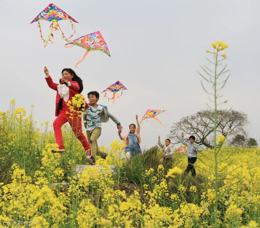 作品点评:一队小孩和风筝呈对角线构图,鲜艳的颜色与黄色的油菜花相得益彰,作为前景的那一支油菜花为画面增添了纵深感和平衡感。
