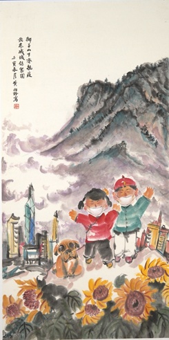 題目:同心抗疫-天使花卉