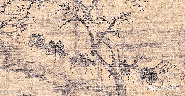 在畫面開端,有老少二人帶領一支馱隊,馱着木炭,在匆匆趕路。與之呼應的,是汴梁城門外的炭市,他們是要將木炭送到炭市出售的。北宋時,煤炭已經出現,比木炭好用還便宜。木炭的生意怕是更難做了。寒食結束,家家都要重新生火,市面上對炭的需求量大。他們趕着馱隊,急匆匆而來,就是想趁機賣個好價錢吧。