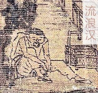 孫記正店是畫面中檔次最高的酒店,門裏門外熱鬧非凡。真給人一種「市列珠璣,戶盈羅綺,競豪奢」的感覺。這時,你還記得前面提到的流浪漢和乞丐嗎?還記得賣炭翁嗎? |