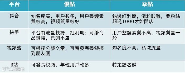 圖 | 不同視頻平台的優缺點對比