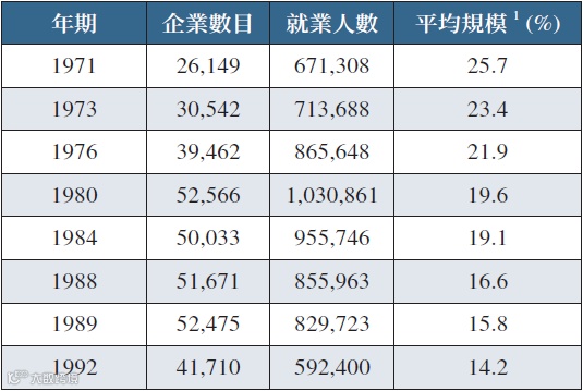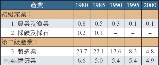 在這個過程中,製造業快速從香港轉移至內地,本地製造業增長速度迅速下滑。1980至1997年期間,香港本地生產總值的年平均增長率一直維持頗高的增長速度。相對而言,製造業總產值的年均增長率則由1980至1986年之間的12.5%下跌至1986至1992年的6.5%;1992至1997年的增長率更變為負值(-4.1%) ,顯示製造業在香港經濟的重要性快速下滑 。