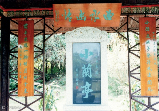一、僅有蘭亭作為「曲水流觴」的一種標識。例如香港的道觀雲泉仙館內有一小蘭亭。其匾曰:曲水幽情;其聯曰:小徑通幽,萬壑清風連閬苑;蘭亭攬勝,一輪明月到雲泉。