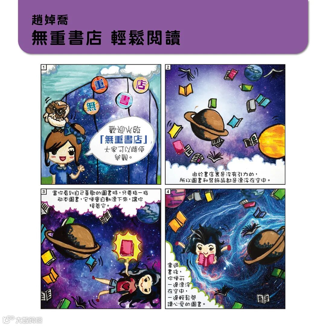 是次比賽以「假如我是書店店長」為題,鼓勵高小及初中生發揮創意,幻想自己變身書店店長,利用畫筆設計一間自己心目中的理想書店。