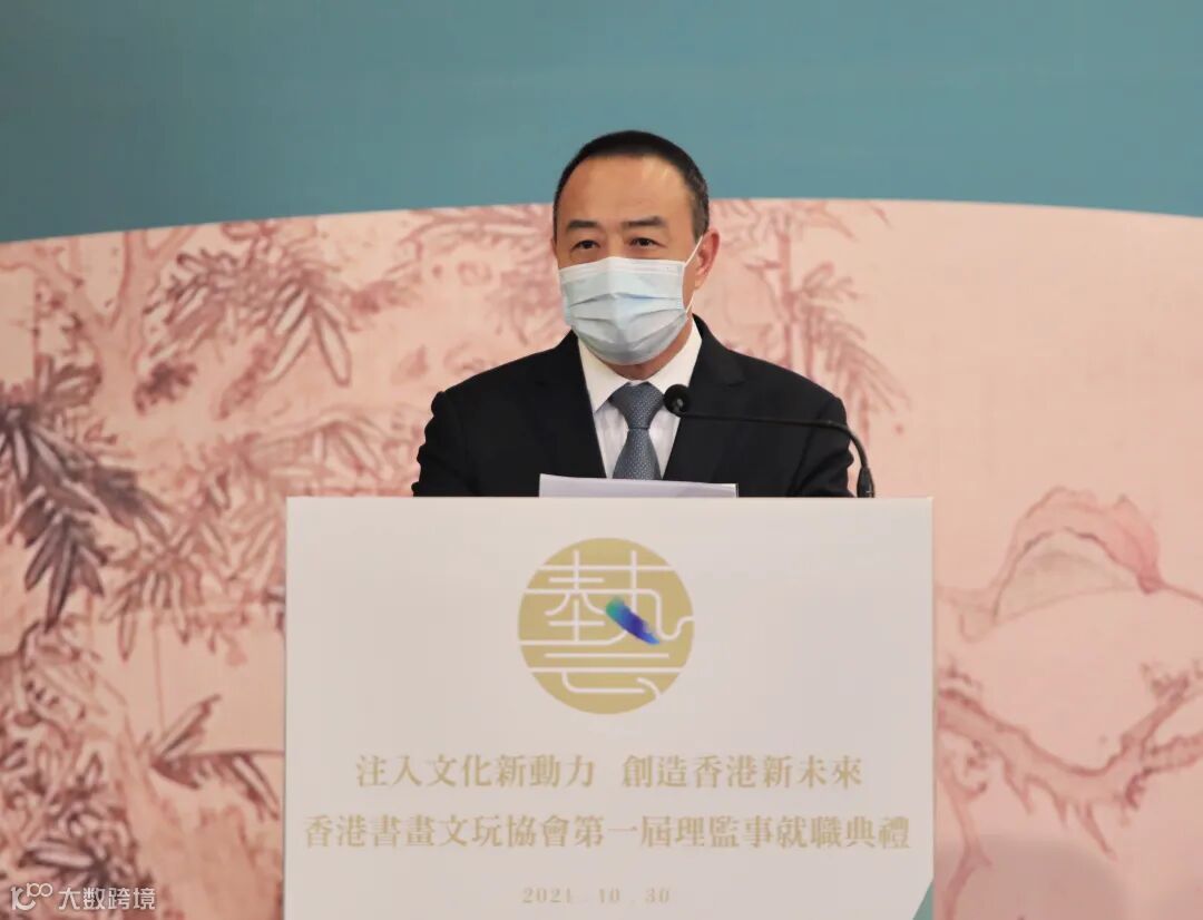 香港特區政府政務司司長李家超在致辭中表示,很高興見證香港書畫文玩協會第一屆理監事的就職,相信協會將提供一個優秀的文化藝術交流平台,促進香港、內地和海外文化藝術界的聯繫和交流,讓廣大市民了解博大精深的中華文化,培養家國情懷,提升市民的文化素養。