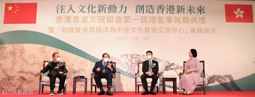 儀式之後舉行的專題論壇以「助推香港發展成為中外文化藝術交流中心」為主題,由香港書畫文玩協會三位榮譽顧問——香港中文大學前校長金耀基、香港美協主席林天行以及聯合出版集團董事長傅偉中共同擔任對談嘉賓,鳳凰衛視曾瀞漪主持。