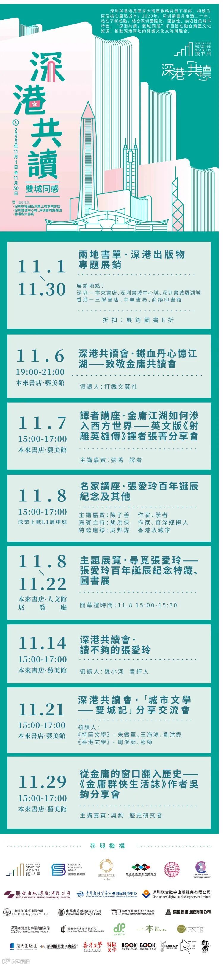 11月的活動月期間,還有接連不斷的金庸、張愛玲的深港共讀會、專家學者講座,也將於本來書店精彩亮相,期待讀者的關注、參與。這場聯通「深港文學」「雙城交流」的故事,必將常說常新。