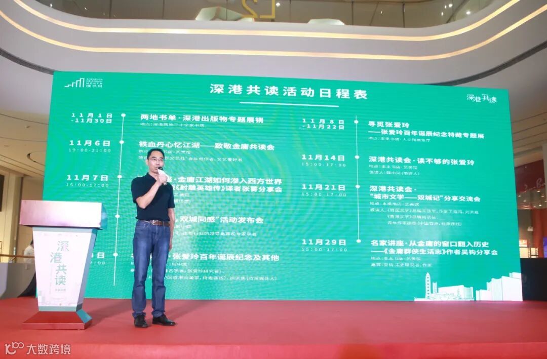 圖 | 中商貿易總經理、本來書店總經理唐建元在會上發佈「深港共讀活動日程表」