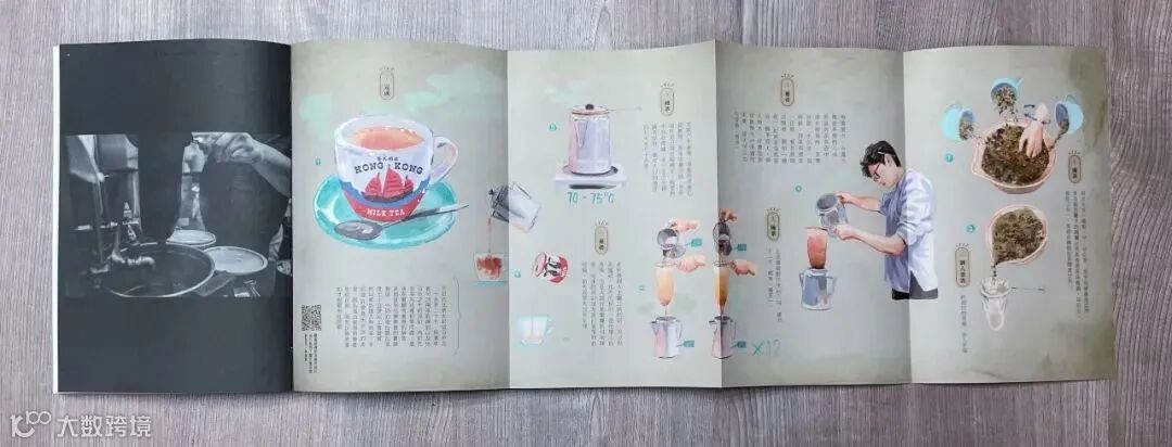 除了小說和奶茶的起源介紹,書中附有相冊、拉頁、短片,甚至掛耳茶包,以影像、插畫等帶讀者走入蘭芳園,以及認識沖泡奶茶的流程。認識奶茶,可以輕鬆,可以嚴肅,本書同時從兩個面向引領讀者進入奶茶世界。