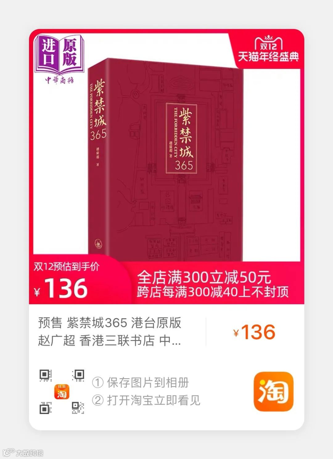《紫禁城100》一書,概述紫禁城的大小建築,帶領讀者穿梭天安門、午門、太和門,直抵皇帝臨朝所在的太和殿,以及后妃生活的東西六宮,可謂將大內乾坤和盤托出。此書是趙廣超先生和其設計及文化研究工作室,還有故宮文化研發小組多年心血的結晶。它以全新的視角,豐富的文字,尤其是獨特和精工的繪圖效果,向讀者細訴一個個紫禁城的故事,再現了這座世界文化遺產深厚的魅力。