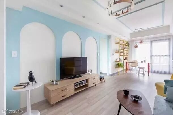 电视背景墙模仿地中海拱门,打破了单色墙面的呆板生硬!