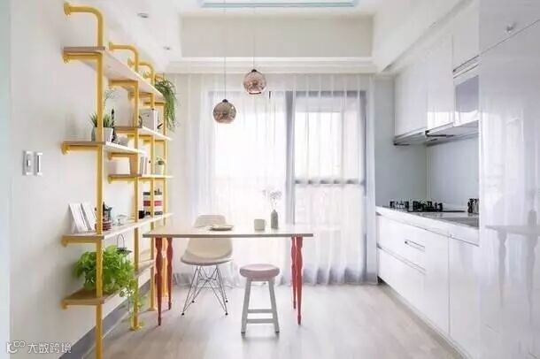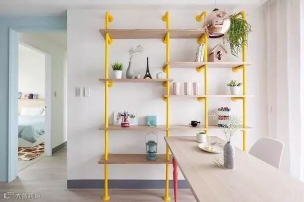 木板、水管搭建的置物架,简单实用,尤其是几盆绿植,让空间多了几分活力与自然!