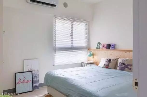 卧室面积不大,淡绿色的床单是卧室内最抢眼的色彩,再搭配两幅动物图案壁画、抱枕,直接体现了屋主对自然的热爱!