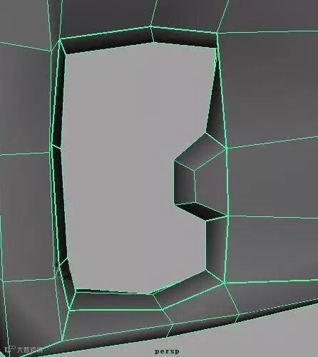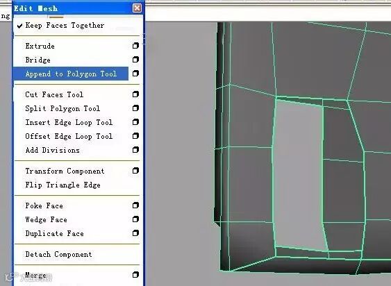 4.edit mesh>Append to polygon Tool. 补好洞,如图: