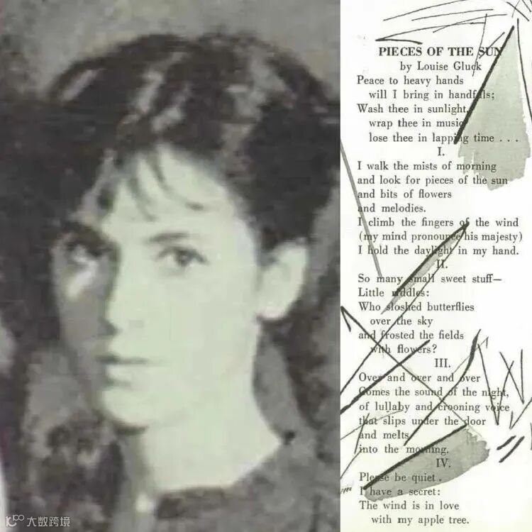 與很多偉大的詩人一樣,露易絲·格麗克的創作歷程也與苦難緊隨。出生於優渥家庭,相當重視文化教育的高知雙親,讓露易絲·格麗克3歲起就熟悉希臘神話,4、5歲就讀過莎士比亞的戲劇《辛白林》,少年時期就渴望與葉芝、濟慈等偉大詩人比肩,立下成為詩人的志向。