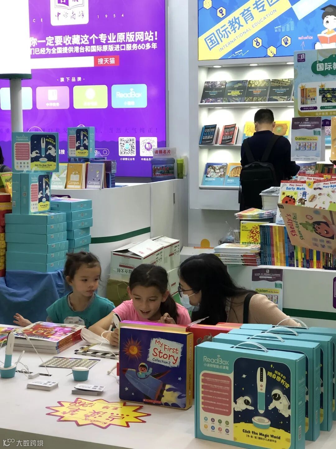 剛剛在雙十一中取得天貓、京東、當當三大平台原版類目第一的中商貿易,馬不停蹄地奔向上海,帶着上千種純正原版進口童書和國際學校教材教輔,給現場的孩子帶去一座「隨身原版圖書館」。