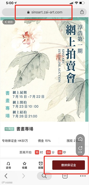 在手機瀏覽器中粘貼鏈接並轉到,點擊「繳納保證金」
