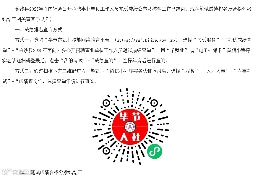 金沙事业单位笔试排名公布