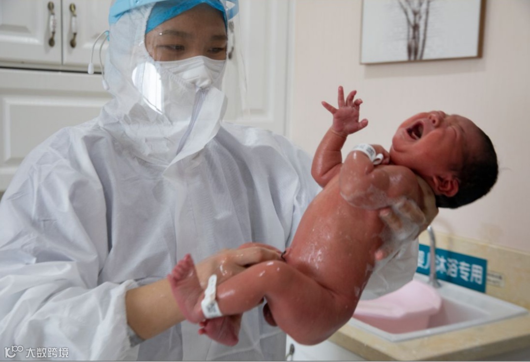 武漢市兒童醫院,護士陳昱為新生的寶寶洗澡。 | 劉宇 攝