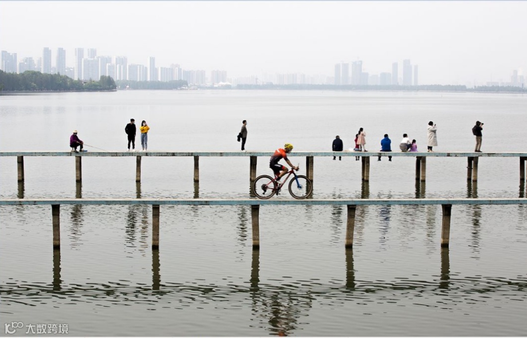 武漢市民在武大淩波門附近的棧橋遊覽。 | 劉宇 攝