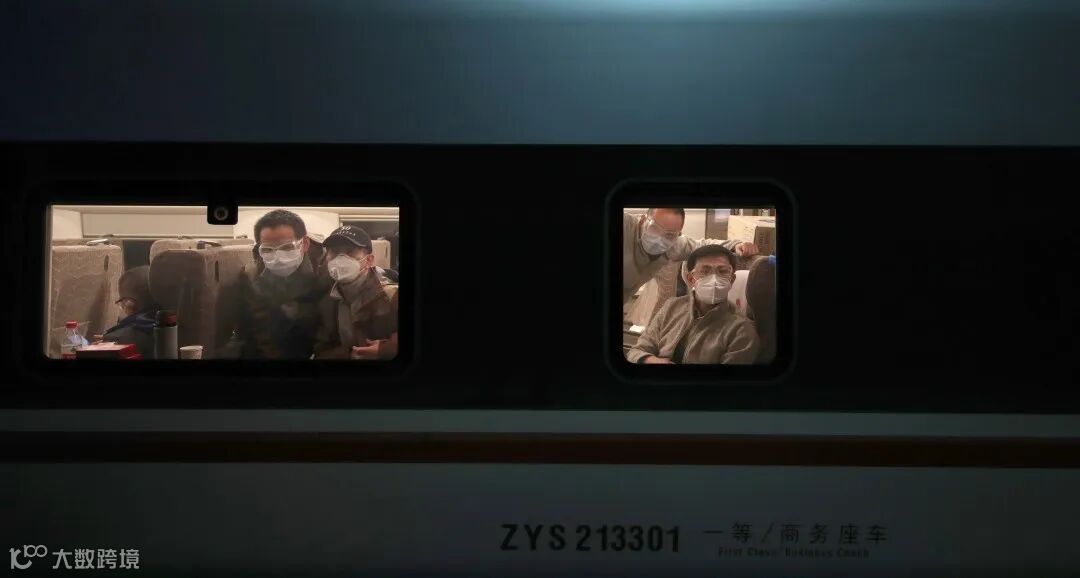 李舸、陳黎明、作者、柴選(從右至左)在開往武漢的列車上 | 季春紅 攝