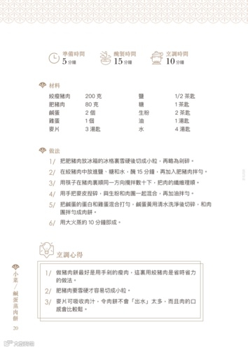 本書延續陳家廚坊的一貫作風,選材實用,做法簡單易學,所有食材和醬料都可以在普通街市或超市買到,對廚房設備也沒有特別要求。
