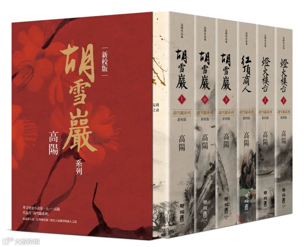 套裝共六冊,《胡雪巖》(上、中、下)三冊寫胡雪巖與王有齡相識到發跡之路;《紅頂商人》敘述王有齡殉亡後,胡雪巖改投靠左宗棠,經商貿易生涯邁入全盛輝煌時期;《燈火樓台》(上、下)寫了胡雪巖的結局。