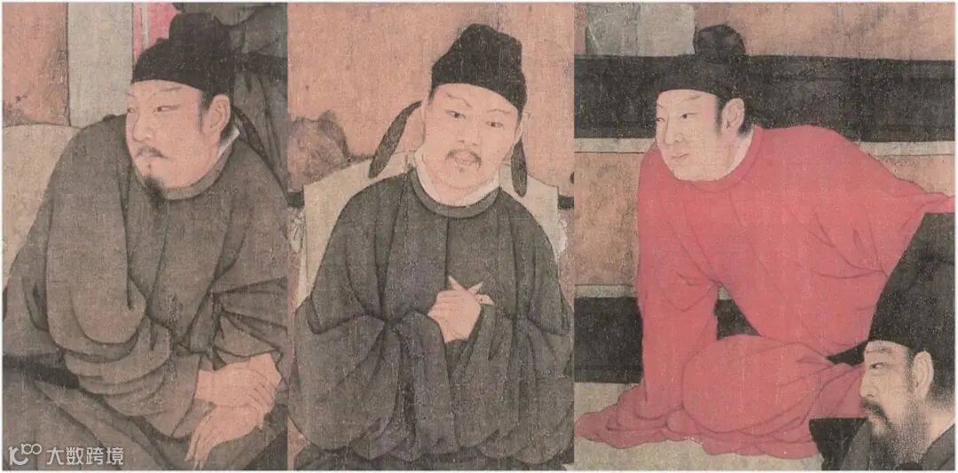 圖|從左至右看,左二是跳「六么」舞的舞伎,左三是韓熙載的門生在拍板伴奏,右二是韓熙載擊羯鼓,中間參宴的和尚神情似乎有些尷尬。