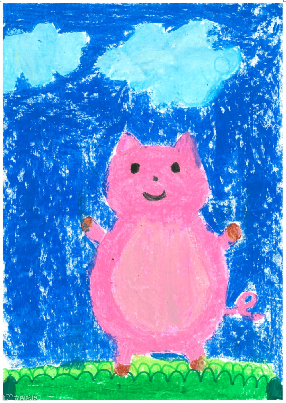 這張畫用上大量的藍色,主角是一隻粉紅豬豬,豬豬所佔的位置頗正中,顯示繪畫者希望受到關注。