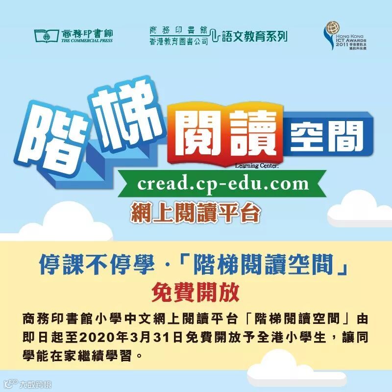 商務印書館小學中文網上閱讀平台「階梯閱讀空間」由即日起至2020年3月31日免費開放予全港小學生,讀同學能在家繼續學習。