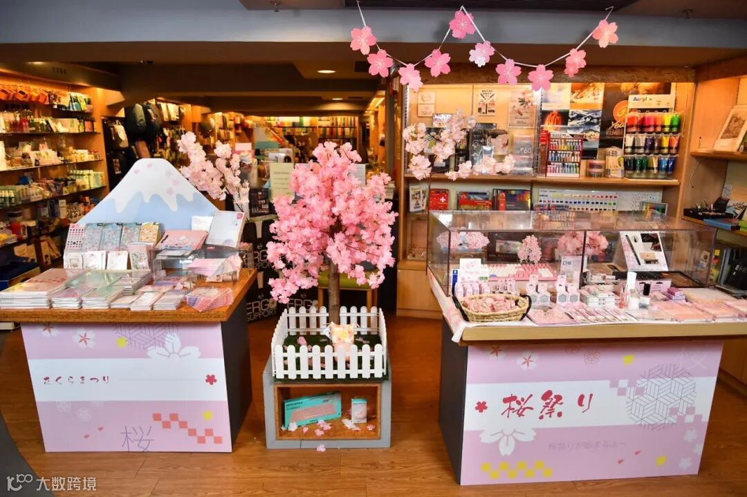 步入書店的文具部,夢幻的粉色場景映入眼簾,彷彿走進櫻花世界般。富士山、櫻花樹、花瓣……在精心佈置的映襯下,櫻花系列產品更顯吸引。浪漫的氣氛吸引讀者不禁駐足,潛心選購自己心儀的商品。
