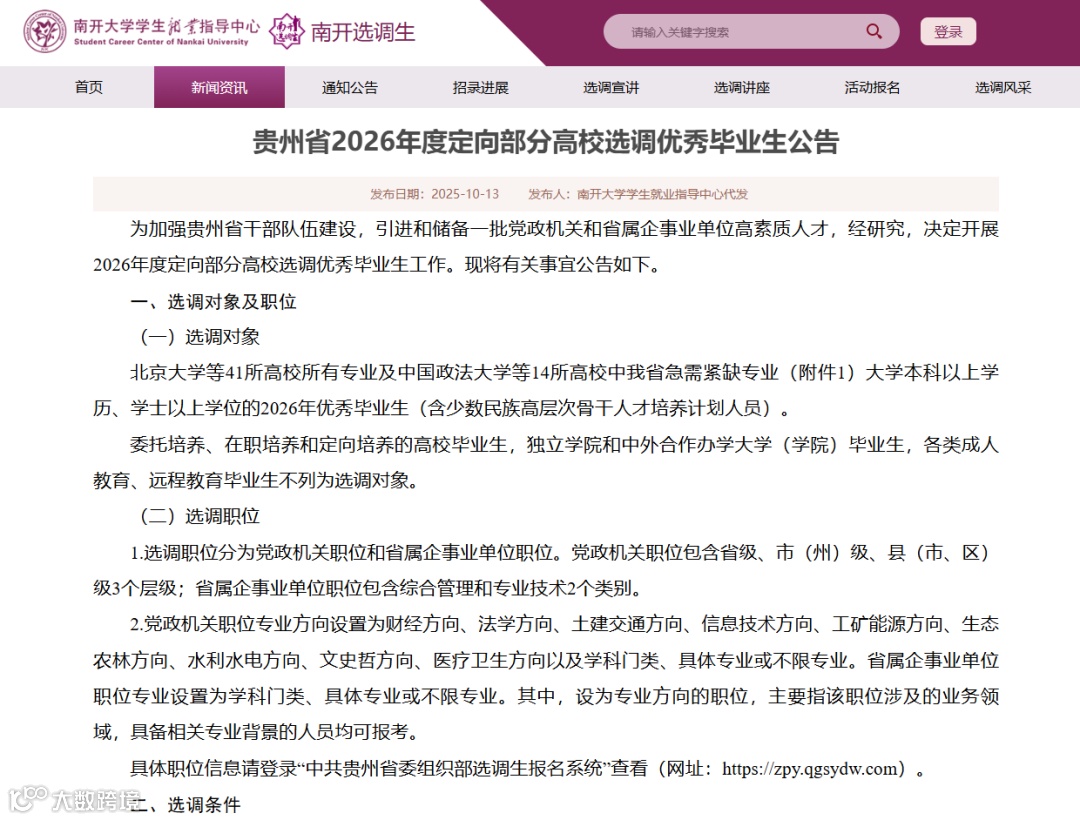 2026年贵州选调生招考来了