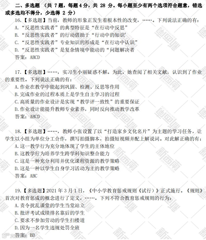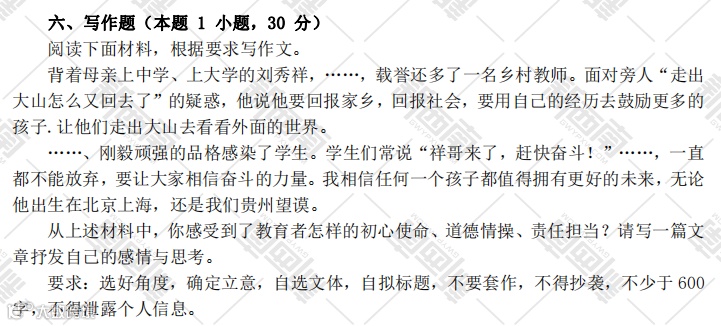 同时贵州招考还会考论述和作文,命题紧贴时代,新政策新理念等。例如:2023年考了提升科学素养,考了教育者的初心使命,责任担当!