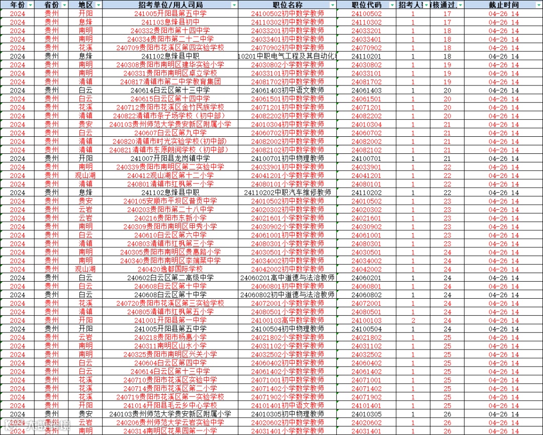 贵阳教招截止4月26日的报名人数