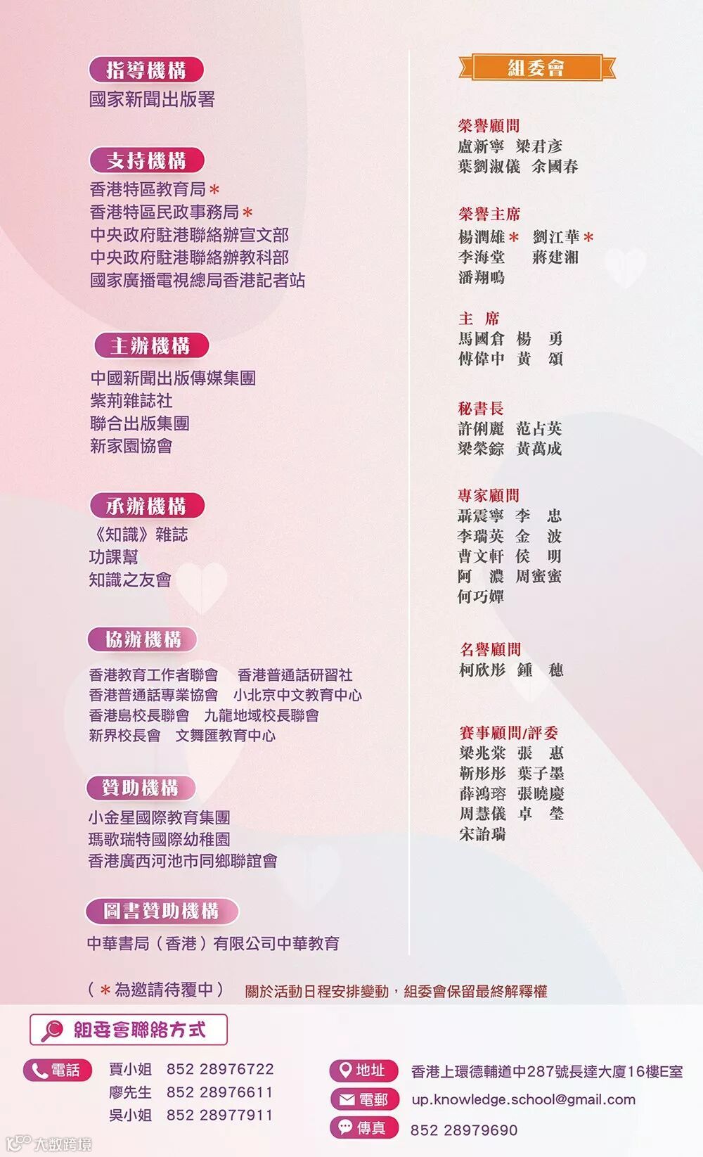 *關於章程及日程安排變動,組委會保留最終解釋權