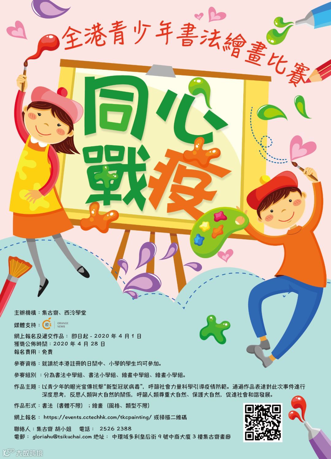 作品提交截止日期為2020年4月1日(星期三)下午五時正,本次比賽以電子形式於網絡平台進行,所有作品投遞僅接受電子圖檔,請在大賽官方網頁提交JPG/PNG或PDF 電子檔,如上傳遇到問題,請先完成網上報名,提交資料後另將作品圖經電郵傳送至:tsikuchai@gmail.com,來函請註明「同心戰『疫』—全港青少年書法繪畫比賽」,並請附上報名成功後顯示的報名碼。
