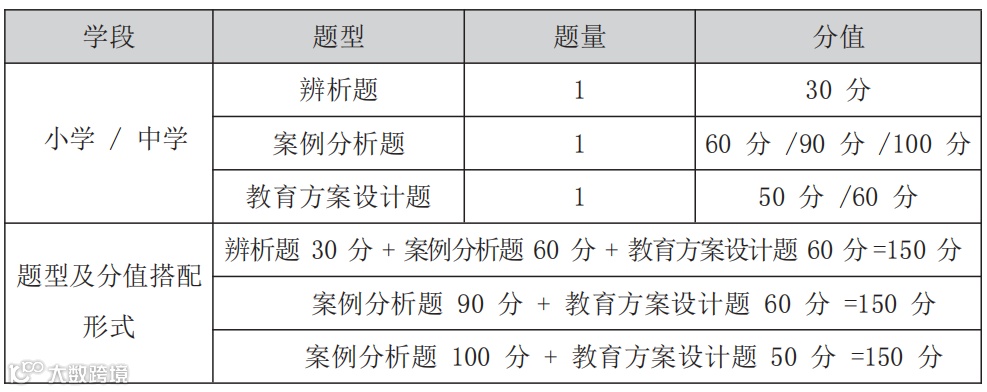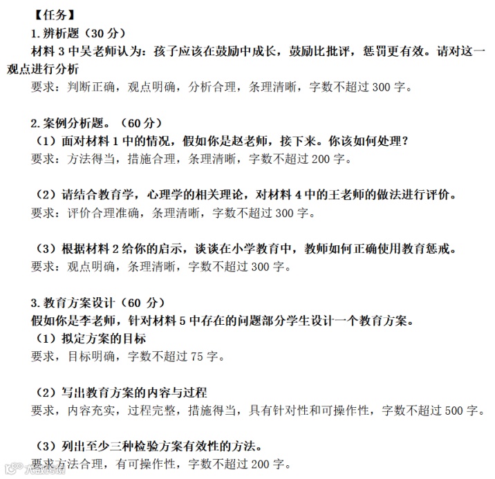试卷主要题型包括辨析题、案例分析题、教育方案设计题等。如2022年5月21日教师岗相关题型: