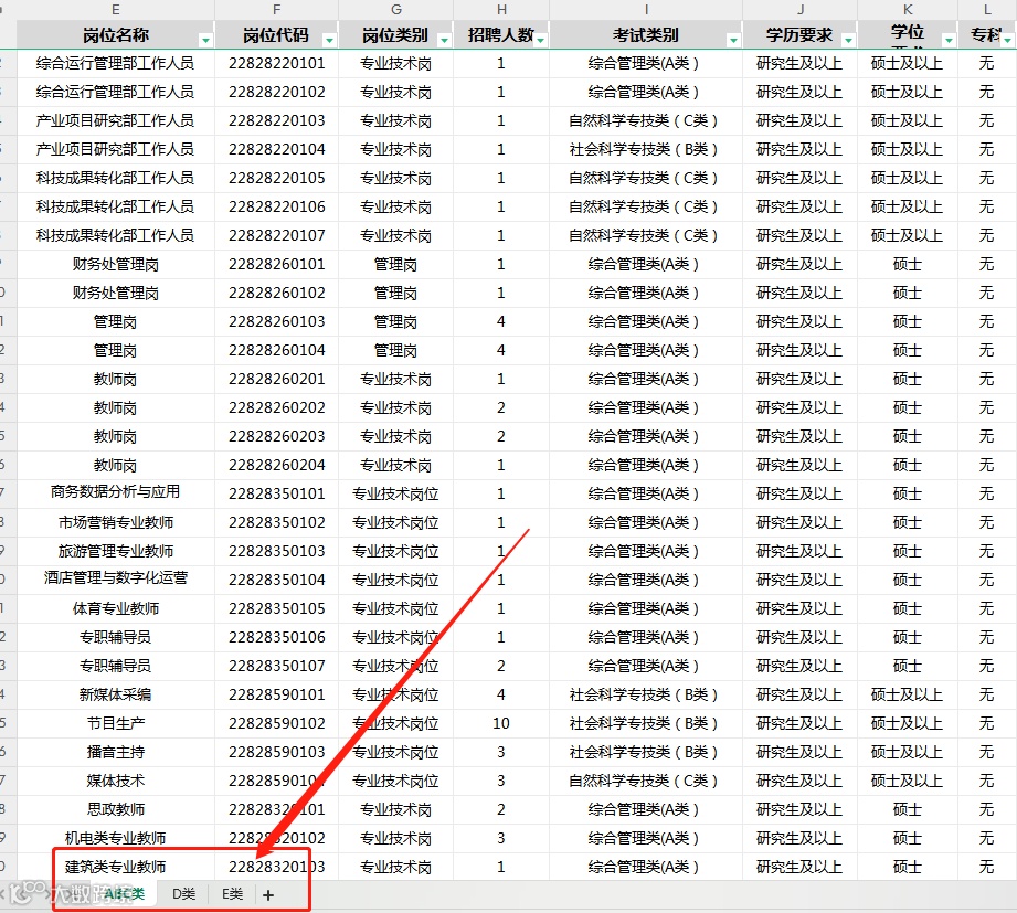 ABCDE五大类岗位的职位表