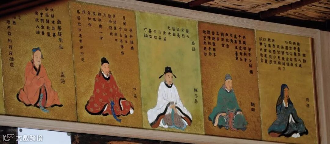 然而,當我踏進書院木地板,在廊下坐定,眼前景色的華美和靜謐,實在叫我震懾─ 木造房間裡,蕩漾著千古文學的芬芳,花開鳥鳴,如詩如畫。抬頭再看到三十六位詩仙坐像,在牆角俯望著自己─林逋、寒山、杜牧、李賀……全是中國古代詩人,忍不住拿出紙筆一路抄下去。