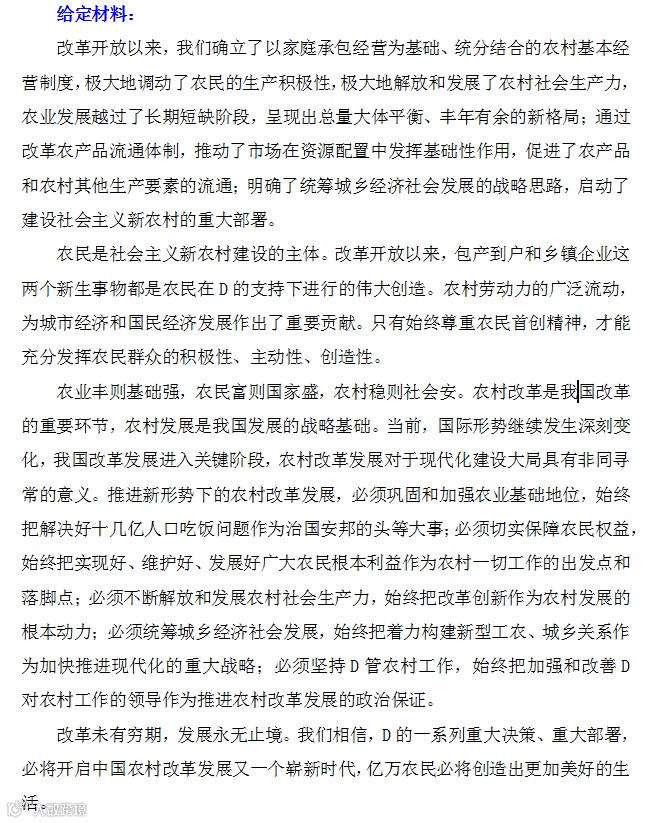 给定资料末尾提到“改革未有穷期,发展永无止境”,请你结合对这句话的思考,写一篇文章(35分)
