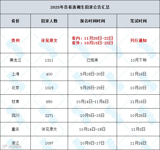 不久前贵州就发布了相关公告,具体可看-贵州定向选调公告发布!官方报名指南点击查看!